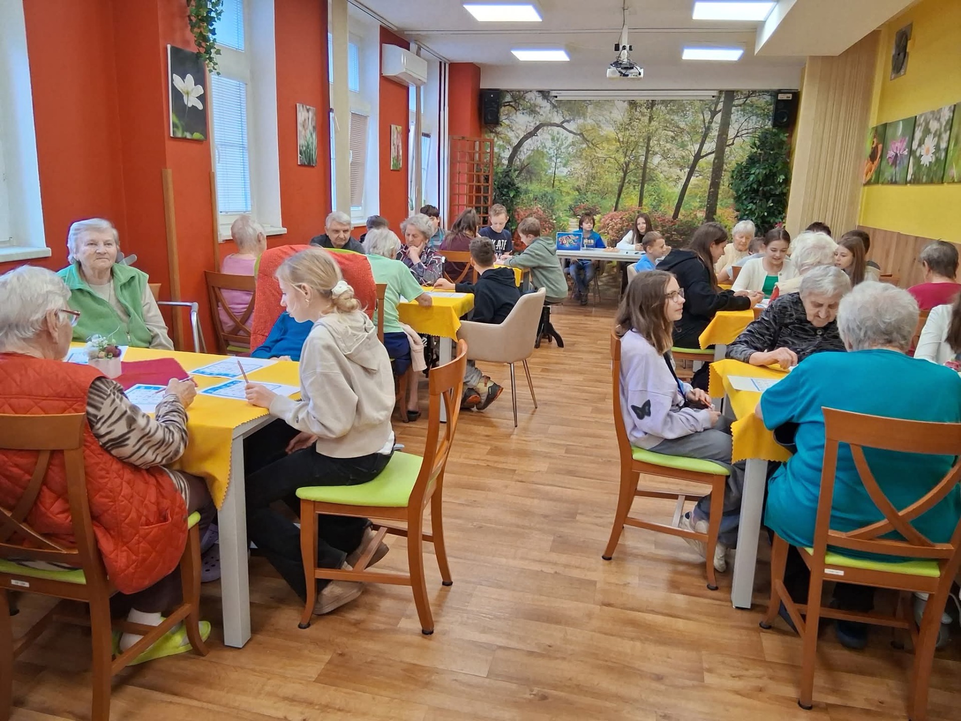Po vřelém přivítání jsme se pustili do hraní. Šesťáci zde nebyli poprvé, takže věděli, co a jak. Někteří se střídali v losování a moderování, ostatní zasedli ke stolečkům s babičkami a dědečky. Byla radost sledovat, s jakou přirozeností a upřímným zájmem děti komunikovaly se svými staršími společníky. Hra je bavila, a když bylo třeba, neváhaly pomáhat svým starším spoluhráčům, když něco přeslechli nebo přehlédli.