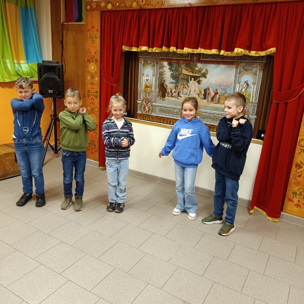 V úvodu programu se děti dozvěděly, z jakých částí se loutka skládá a jak se loutka vyrábí. Všichni jsme si mohli podržet některé loutky a vyzkoušet si, jak náročné je s loutkou manipulovat. Nahlédli jsme také do zákulisí divadla a prohlédli jsme si prostředí, kam mají přístup jen loutkoherci.
